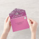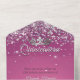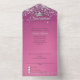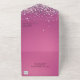 Pretty fushia pink Quinceañera birthday party all in one invitation, with graphics of silvery glitter and a silver tone crown. Personalize the custom text for your favourite girl's special day.