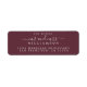 Mariage chic, moderne et simple étiquette d'adresse de retour avec le texte le futur M et Mme en blanc élégante calligraphie manuscrite sur un arrière - plan bordeaux. Ajoutez simplement votre nom et votre adresse. Conçu exclusivement pour vous par Happy Dolphin Studio. Si vous avez besoin d'aide ou de produits correspondants, veuillez nous contacter à happydolphinstudio@outlook.com . Nous sommes heureux de vous aider à faire de votre mariage la plus belle journée!