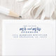 Mariage chic, moderne et simple étiquette d'adresse de retour avec le texte le futur M et Mme en bleu classique élégant script calligraphie. Ajoutez simplement votre nom et votre adresse. Conçu exclusivement pour vous par Happy Dolphin Studio. Si vous avez besoin d'aide ou de produits correspondants, veuillez nous contacter à happydolphinstudio@outlook.com . Nous sommes heureux de vous aider à faire de votre mariage la plus belle journée!