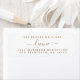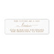 Mariage chic, moderne et simple, adresse de retour avec le texte le futur M et Mme et votre nom de famille en or élégant écriture calligraphie sur un arrière - plan blanc. Ajoutez simplement votre nom et votre adresse. Conçu exclusivement pour vous par Happy Dolphin Studio !