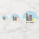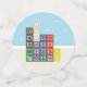 Start encouraging a love of science early with this chemistry themed set of wooden alphabet blocks featuring the chemical formula for oxytocin, the "cuddle hormone". Mixed around the elements of the formula are blocks with tools and structures to showcase some of the variety of concepts and fields associated with chemistry, including test tubes, a flask, molecular structures, and an electron orbital. A pattern of Bohr model atoms in pale blue on a sky blue background creates a cute wallpaper to sit behind the white baseboard and tan carpet and sets a simple scene for the blocks. Customize the message in the carpet portion with your soon-to-be little one's gender or a message of your choice to create a truly unique party decoration for your baby shower. This confetti will match with any other Future Chemist's Blocks product so that you can easily make your event as coordinated as you desire.