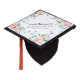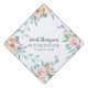 Elegant bright colourful floral with white text on white graduation cap topper class of 20XX personalized. Peach and blue green.