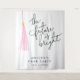 Celebrate your graduation in style with this fun, modern party backdrop featuring hand drawn illustration of a light pink tassel with typography text that says "the future is bright."