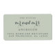 Chic, modern and simple wedding return address label with the text future mr mrs in off-black elegant handwritten script calligraphy and stylish typography on a pastel green background. Simply add your names and address. Exclusively designed for you by Happy Dolphin Studio. If you need any help or matching products please contact us at happydolphinstudio@outlook.com. We're happy to help you make your wedding the most beautiful day!