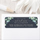 Chic, modern and simple wedding return address label with the text the future Mr and Mrs in ivory elegant script, and a stylish touch of eucalyptus foliage on a dark blue background. Simply add your name and address. Exclusively designed for you by Happy Dolphin Studio. If you need any help or matching products please contact us at happydolphinstudio@outlook.com. We're happy to help you make your wedding the most beautiful day!