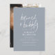 This bridal shower invitation features chic calligraphy, modern typography, and a custom photo. We have chosen this modern dusty blue and white combination as it is one of our favourite wedding colours! A light and peaceful colour scheme, perfect for spring showers. At the top of the card, "brunch + bubbly" is handwritten in a modern lettering style, with the bride's name below in sans-serif capitals. A line divider is separating it from the rest of the event information. The celebration details are in a trendy combination of serif lowercase and capitals. The venue is all in lower case. The back of the cards features a full-bleed photo of your choice. In white, "future mrs" is in signature-style script lettering and the surname is underneath. This makes the invitation a beautiful keepsake to be showcased on fridges, mantelpieces, bookshelves, coffee tables, or photo boards! Easily edit the wording to be unique to your event. More colour variations are available in our store, or you can choose your own colour to set the tone for your wedding. Feel free to message me with any questions, I'll be happy to help!