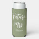 Bride Can Cooler with Text Future Mrs in Sage Green and White. Check out our store collection below for matching items.
