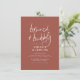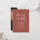 Minimalist bridal shower invitation with signature-style hand-lettering, elegant typography, and a custom photo. We have chosen this boho terracotta and white combination as it is one of our favorites! Perfect for spring, summer, or fall events. Matching with floral, botanical, country, barn, or bohemian themes. At the top of the card, "brunch + bubbly" is handwritten in a signature lettering style, with the bride's name below in sans-serif capitals. A line divider is separating it from the rest of the event information. The celebration details are in a trendy combination of serif lowercase and capitals. The venue is all in lower case. The back of the cards features a full-bleed photo of your choice. In white, "future mrs" is in signature-style script lettering and the surname is underneath. This makes the invitation a beautiful keepsake to be showcased on fridges, mantelpieces, bookshelves, coffee tables, or photo boards! Easily edit the wording to be unique to your event. More color variations are available in our store, or you can choose your own to feature your wedding colors. Feel free to message me with any questions, I'll be happy to help!