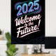 Embrace the cosmic visionary look with this futuristically-themed poster featuring glowing '2025' text and a serene starry backdrop. It's an eye-catching blend of neon hues and cutting-edge artistry.