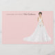 Cartes de notes personnalisées avec une mariée illustrée. Beaucoup de robe mariage, bouquets de fleurs, coiffures et teintes de peau à choisir. Le dos de la carte de note présente un motif floral.