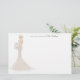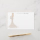 Cartes de notes personnalisées avec une mariée illustrée. Beaucoup de robe mariage, bouquets de fleurs, coiffures et teintes de peau à choisir. La carte du dos de la note comporte un motif en dentelle.