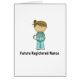 Show your pride in your future registered nurse with this cute cartoon girl dressed in scrubs holding a clipboard and wearing a stethoscope.