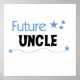Future Uncle keepsake boxes, tiles, ornaments, notebooks, mugs, magnets, cards, buttons, hoodies, keychains, and other future uncle apparel and gift items with a blue and black text and star design.