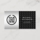 Professional business card in futuristic black and chrome metal effect with triangle pattern. This modern design is based on a simple template that allows you to customize your company logo, address, email, social media address, phone number, and mobile phone number.