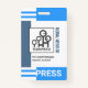 Cover features a creative blue shades stripes and columns design. At the top is a photo template where you can upload photos with a size of 1,000 x 1,000 pix. This is followed by your business name (held vertically), your prestigious name and the job title. Inside the blue layer near the base is the caption "PRESS" which you can change to suit your own service needs.