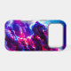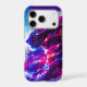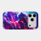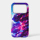 A powerful cosmic leopard emerging from vibrant clouds of neon pink, electric blue, and deep violet.