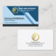 Cover features a futuristic geometric design. Over at the top in the dark blue geometric layer, is a gold global logo you can use alongside its business name and contact details. Near the base in a light blue layer are your prestigious name, job title and a slogan caption to publicize your services.
