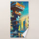 Futuristic Dystopian City, AI Generated Painting Bath Towel Set