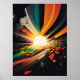 The vibrant colours and unique design of this abstract space art piece make it a standout addition to any gallery wall or focal point in your home. Whether you're a space enthusiast, a lover of retro aesthetics, or simply seeking a visually striking decor element, this artwork is sure to impress.