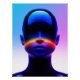 Step into the future with this striking digital artwork of a pixelated humanoid figure blending cyberpunk aesthetics with abstract minimalism. Vivid gradients of electric blue and neon orange contrast against a sleek, glossy form, creating a bold statement piece for modern interiors.