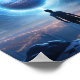 Immerse yourself in a futuristic world with this captivating poster featuring a scene filled with planets and spaceships. Perfect for sci-fi enthusiasts, this poster will add an otherworldly touch to any space. Let your imagination soar as you gaze upon the intricate details of this futuristic landscape.