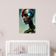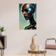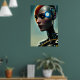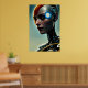 The Futuristic Science Fiction Cyborg Lady Wall Art poster features a futuristic cyborg lady against a blue background, AI created with the human designer.
