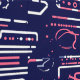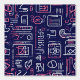 This digital artwork features a futuristic pattern of tech-inspired icons and shapes in neon pink, white, and purple lines on a deep navy background. The abstract design includes symbols reminiscent of web interfaces, charts, and computer graphics, giving a high-tech, digital feel. Perfect for tech enthusiasts, this vibrant, modern design is ideal for adding a cyber-themed aesthetic to a variety of products.