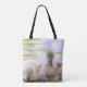 Fuzzy cygnets design this tote.