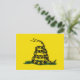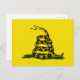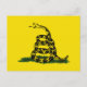 The Gadsden flag is a historical American flag with a yellow field depicting a timber rattlesnake coiled and ready to strike. Beneath the rattlesnake are the words Dont Tread on Me. Some modern versions of the flag include an apostrophe in the word don't.