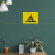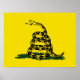 The Gadsden flag is a historical American flag with a yellow field depicting a timber rattlesnake coiled and ready to strike. Beneath the rattlesnake are the words Dont Tread on Me. Some modern versions of the flag include an apostrophe in the word don't.