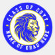 This blue and yellow lion mascot on a sticker with the name of the graduate and their graduation year is perfect for sealing grad party invite and graduate thank you note envelopes. With extended space for longer names, if your grad has a shorter name, you can also add a "From" to fill the space and customize further. These stickers are also perfect for favour bags or even as their own small favour for family members and friends attending your son or daughter's graduation party!