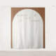 This wedding backdrop features a bohemian arch, celestial themed stars and an elegant simple layout. It's the perfect wedding tapestry for your bohemian desert or rustic earth tone event.