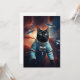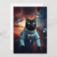 A captivating image of a black cat dressed as an astronaut, gazing confidently into the cosmos. Surrounded by flying saucers and a vibrant nebula, the cat embodies a sense of adventure and mystery.