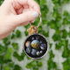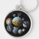Beautifully designed fractal planets surrounded by stars suspended into space, in main colours of gold and blue.