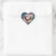 A luminous heart-shaped object glows at the center, surrounded by vibrant cosmic swirls. Small spherical orbs add depth to the celestial scene.