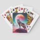 A wolf on a distant planet, with a surreal, colourful landscape and a large, prominent moon in the background.