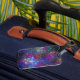 Cosmic bursts with vibrant colors and intricate patterns, weaving together a mesmerizing blend of blues, purples, pinks, and greens. The design evokes the mystery and beauty of the universe, resembling a shimmering nebula or a celestial mosaic glowing against the darkness of space.