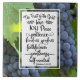 Inspirational quote scripture ceramic tile depicts a nature photograph of a vine with dark purple grapes. It features Bible Verse Galatians 5:22-23. "The fruit of the Spirit is love, joy, peace, patience, kindness, goodness, faithfulness, gentleness, self-control." Photograph by John Cameron.