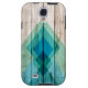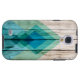 Bois Samsung Galaxy s4 coque avec chevron, tribales, détails géométriques dans les tons vert menthe.