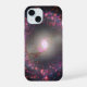 Galaxie spirale NGC 3351. Le gaz moléculaire dense est montré dans le magenta. De jeunes étoiles massives illuminent leur environnement en rouge. Les voies de poussière sont surlignées d'étoiles blanches et nouvellement formées en bleu.