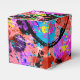 If colour energizes you like it does me, then these favour boxes are for you. Covered with a digital graffiti that I designed, it has shades of coral, orange, lavender, purple, turquoise, midnight blue, white, yellow, lime green, pink, black and more. The layers of colours and varying opacity make for fun favour boxes.