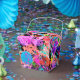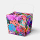 If colour energizes you like it does me, then these favour boxes are for you. Covered with a digital graffiti that I designed, it has shades of coral, orange, lavender, purple, turquoise, midnight blue, white, yellow, lime green, pink, black and more. The layers of colours and varying opacity make for fun favour boxes.
