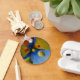 3 dimensional vibrant painting made into a keychain ,using geometric shapes.