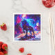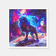 A majestic lion with a glowing blue mane, standing proudly against a backdrop of the galaxy, radiating power and cosmic elegance.