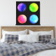 A celestial constellation of color and light—red, purple, lime, blue—framed in a bold square design. Vibrant, harmonious, and full of quiet motion, this is cosmic wall art for modern souls and imaginative spaces.
