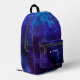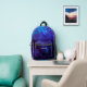 This fun kids backpack design features a watercolor illustration of deep outer space in shades of dark blue, purple, and cyan. You can customize it with your child's name on the front. If you prefer not to include a name, then simply delete that text. It's a cool modern design for kids and even adults!
