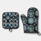 Galaxy pearls snowflakes inspired elegant blue oven mitt & pot holder set