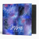 Beautiful custom galaxy 3 ring binder featuring a pretty blue and purple galaxy space design. You can personalize it with your name and text. Perfect for space lovers!