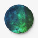 Galaxy Stars Space Green Neon Pattern Paper Plate