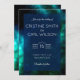 Galaxy wedding invitation in navy blue and emerald green. Can be personalized.